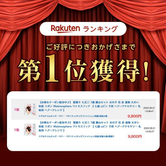 髪飾り 七五三 7歳 勝山セット 女の子 花 赤 着物 大きい 和装 リボン Watmosphere ワトモスフィア