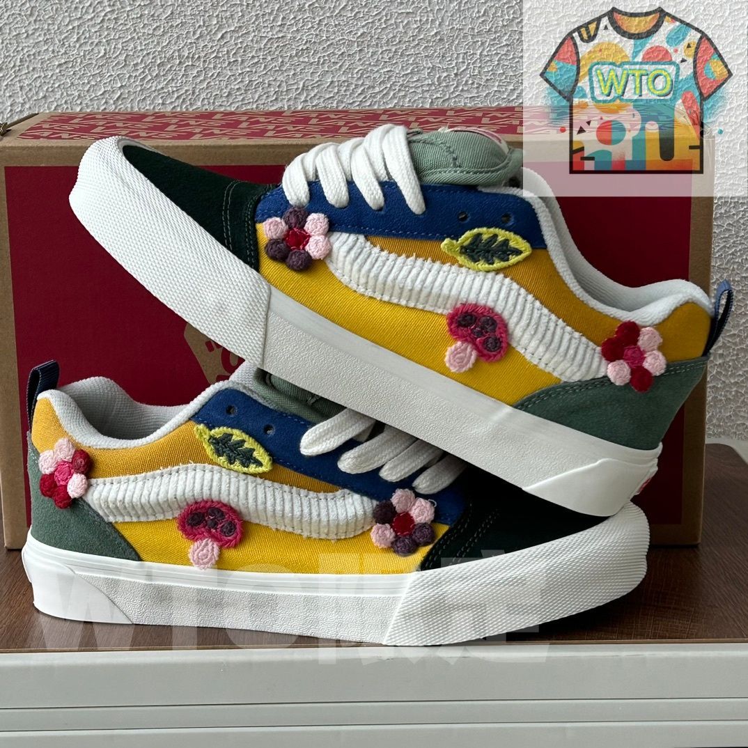 今日 Vans Knu Skool グリーン 春の花柄 ふわふわパンシューズ 男女兼用 スケートシューズ ショックアブソーブ ローカット 品番 在庫 の な価格です -WTO輸入2