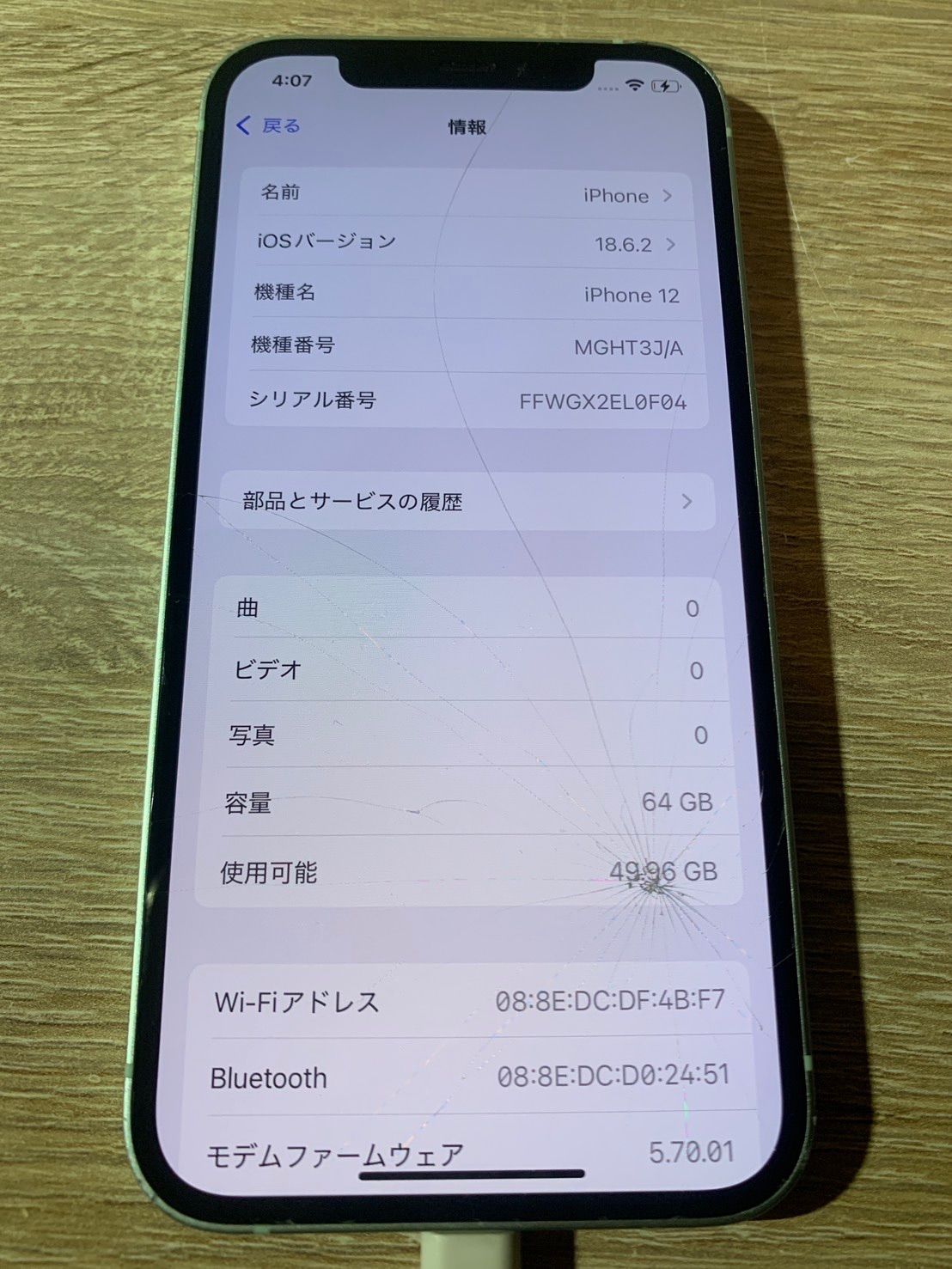 画面にひび割れがありますが、動作に支障はありません。