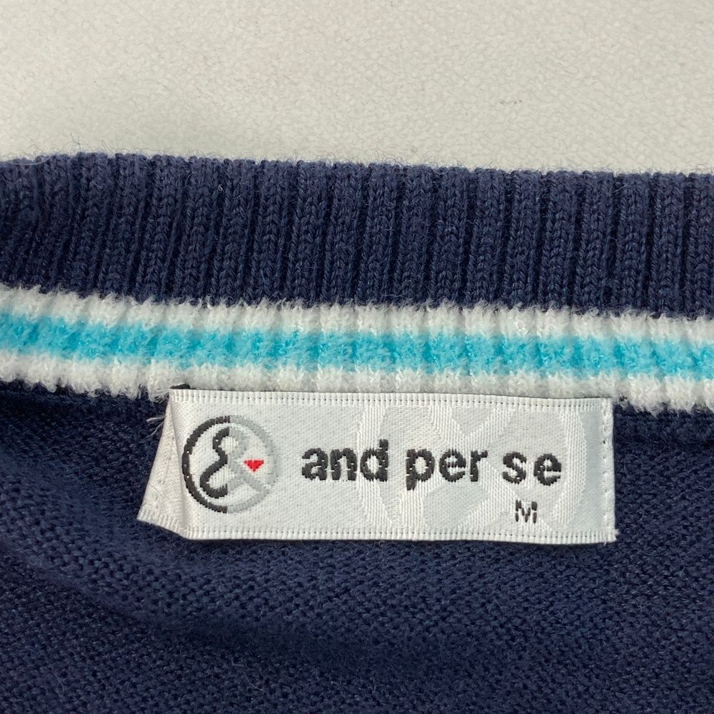 サイズ M AND PER SE アンパスィ モデル ウール混 ニットセーター 総柄 ネイビー系 ゴルフウェア メンズ ストスト