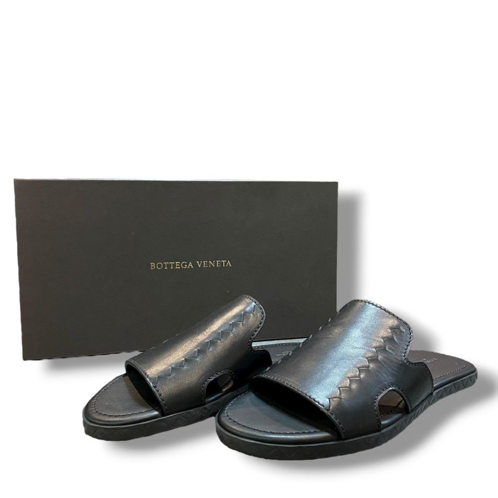 BOTTEGA VENETA Black Leather Intrecciato Woven Sandals サイズ39