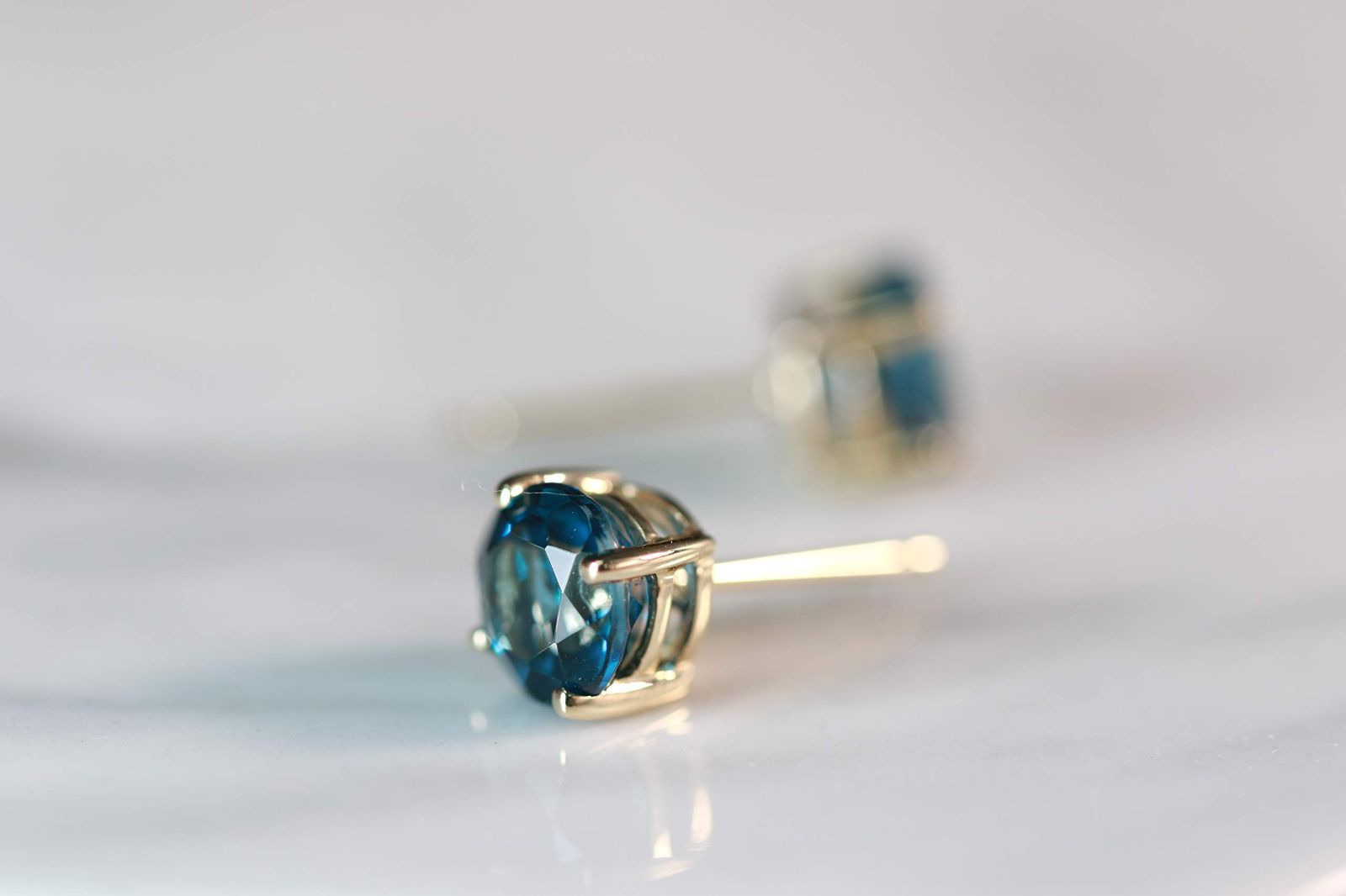 数量 14 Kイエローゴールドスタッドイヤリング のロンドンブルートパーズイヤリングと女性用ダイヤモンド 倫理的に で 有機的に調達した 丸いカット 形状のロンドンブルートパーズの手作りのジュエリー 女性のためのロンドンブルートパーズイヤリング Gr