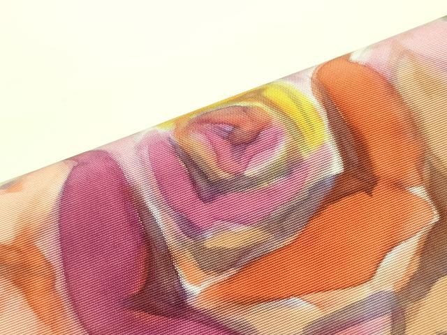 平和屋着物 塩瀬 九寸名古屋帯 作家物 手描き 薔薇 日緑色 正絹 ob
