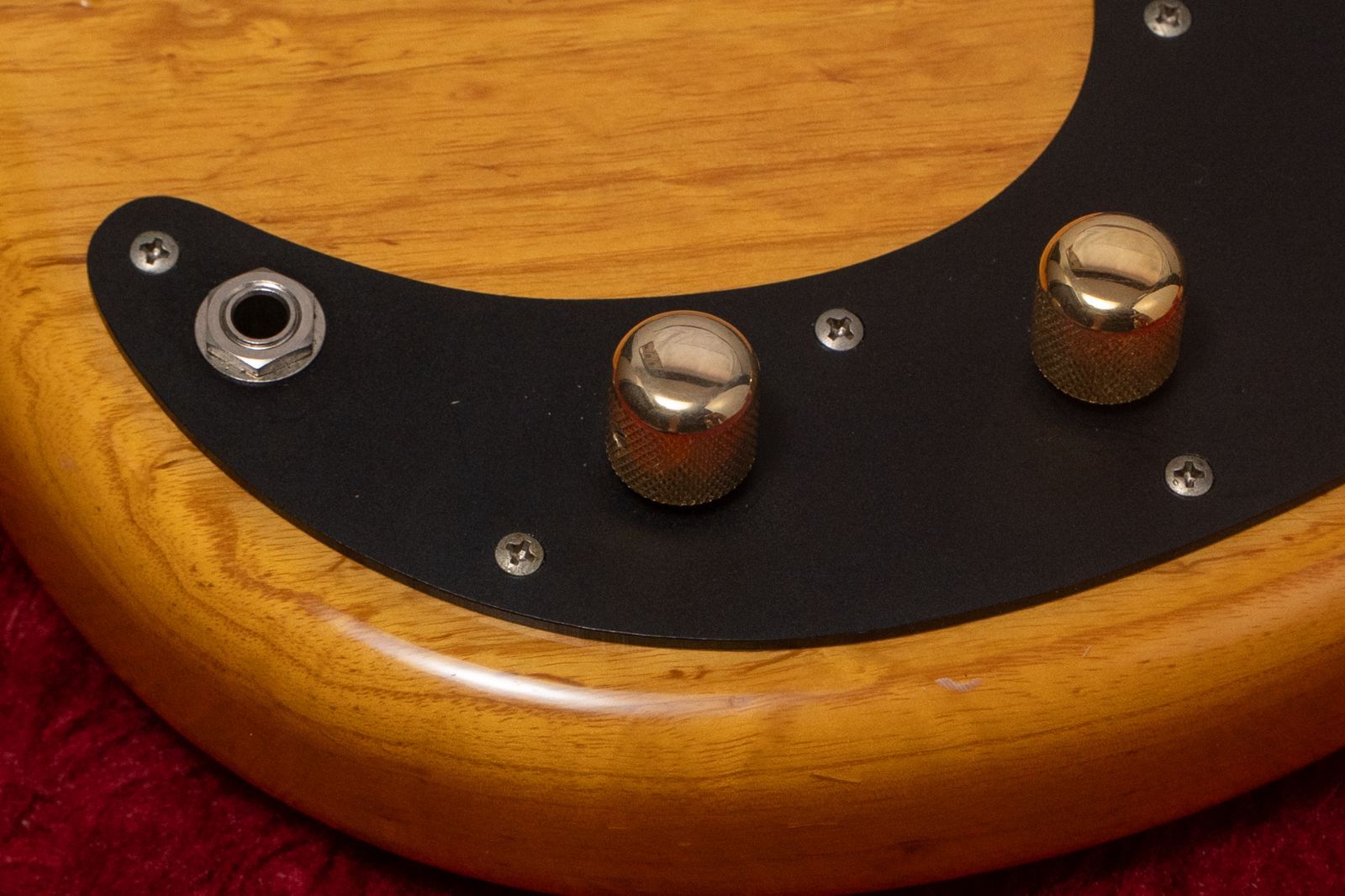 ペグ、ピックガード、ノブ、ブリッジが交換されています。ストラップピンがJim Dunlop製に交換されています。ピックアップはEMGに交換されています。