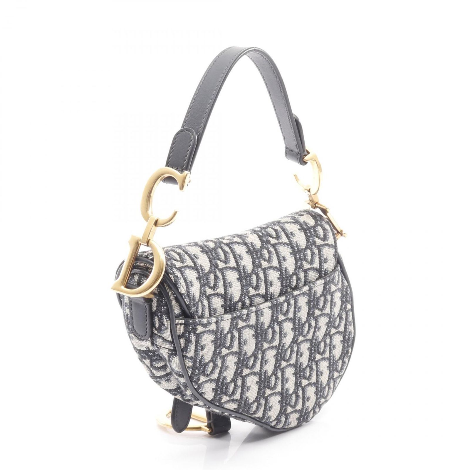 ディオール Dior ハンドバッグ サドルバッグ ミニ オブリークジャガード ネイビー キャンバス レザー オブリーク レディース A