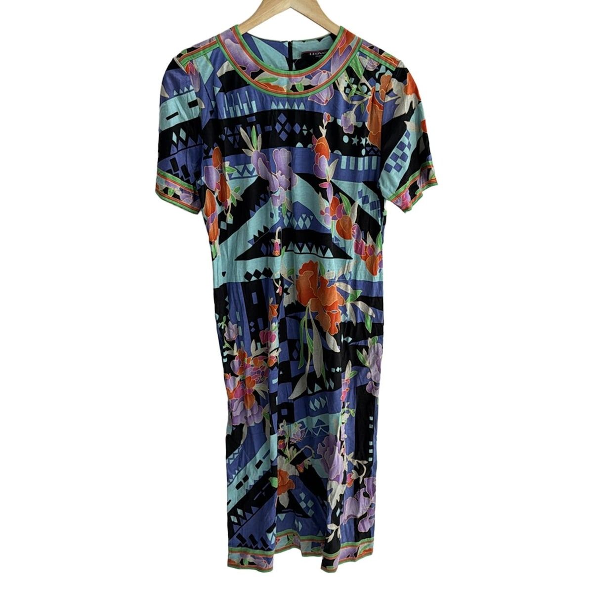 LEONARD レオナール ワンピース サイズM レディース - 黒×ブルー×マルチ 半袖|ロング|花柄