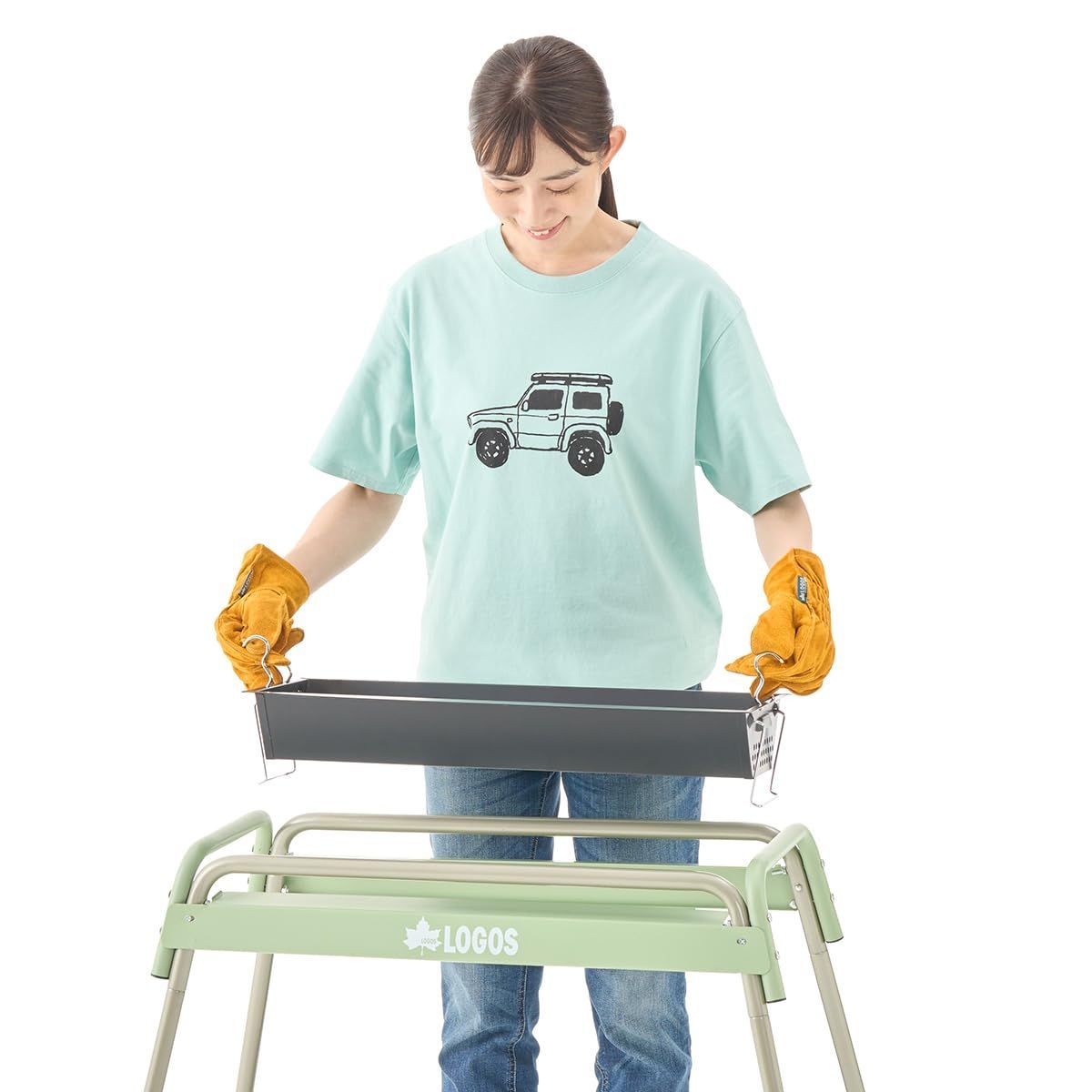 【火傷しにくい安心セーフガード構造!】火床と本体が分離しているので、火傷のリスクを軽減します。火床が一体化しているタイプの本体表面温度が約250℃なのに比べてLOGOSのグリルは約50℃!しかも危険な火床に直接接触しないように、4方向すべてをガードをし、火傷しにくい安全構造になっています。また、グリルの脚部が八の字型のため、転倒を防ぎます。(※3)そして、脚先にはアジャスターがついているため、凸凹地面でも安定します。