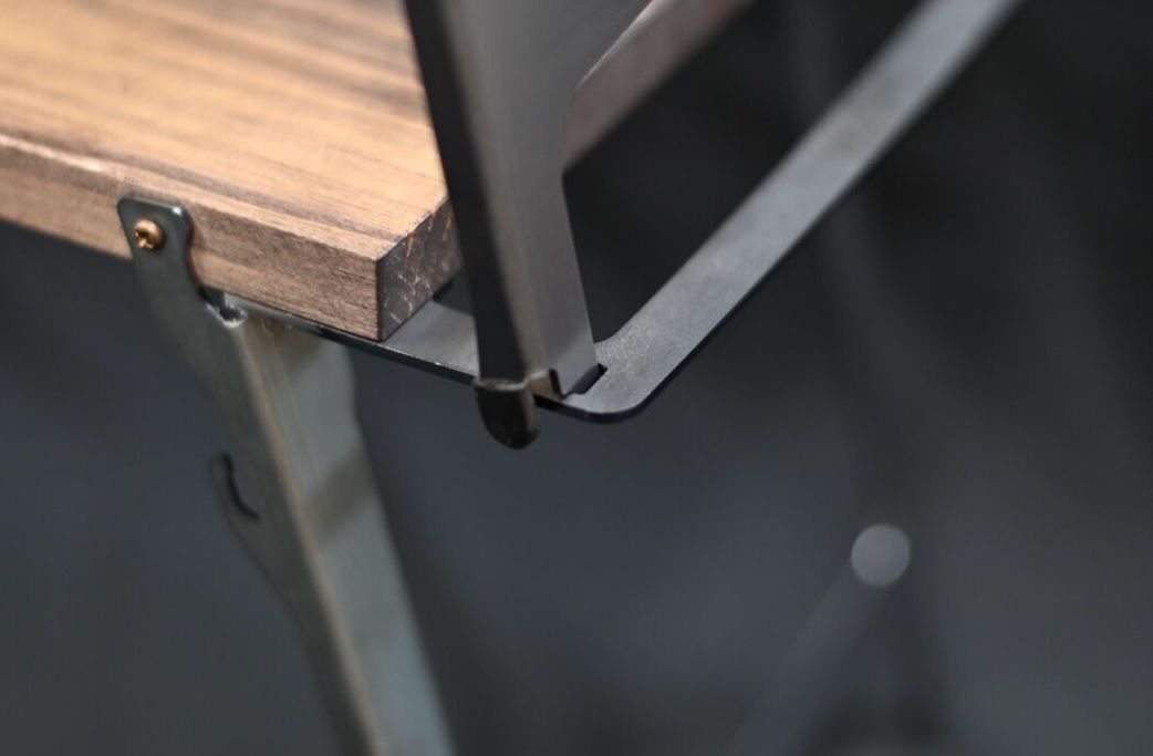 「patan」の美しさは、しなやかでいて無骨な鉄脚と、落ち着いたエボニーブラックの天板に