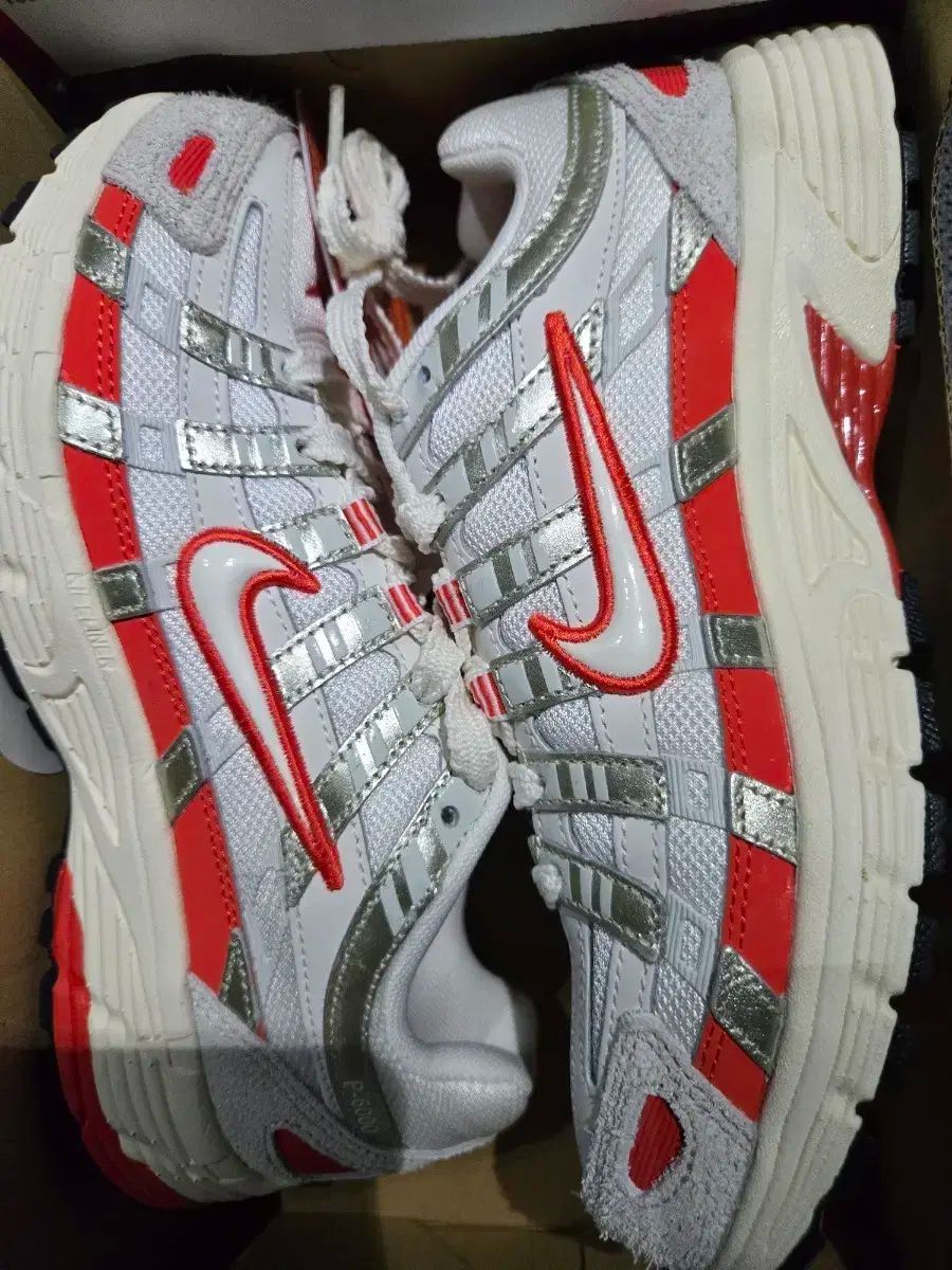 これらはナイキP-6000の白と銀のスニーカーです。