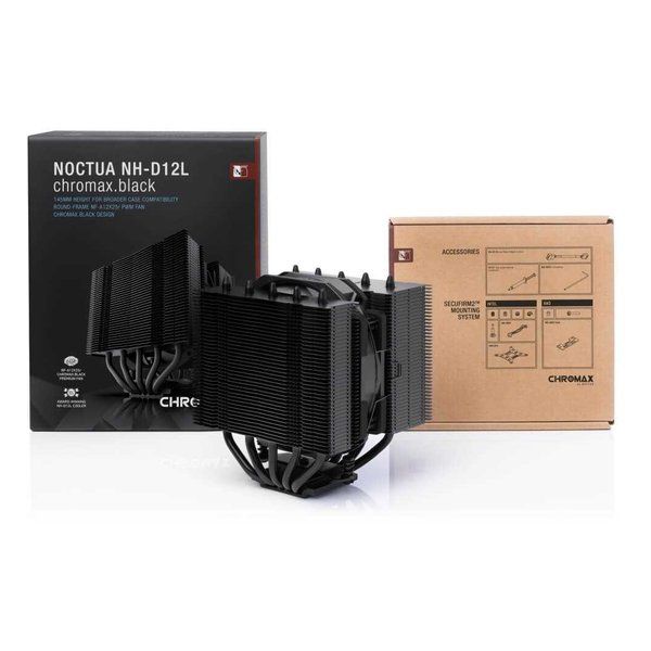 ●NH-D12L chromax.blackは、NoctuaのNH-D12L CPUクーラーのオールブラック版で、優れた冷却性能とケースの互換性を提供します。