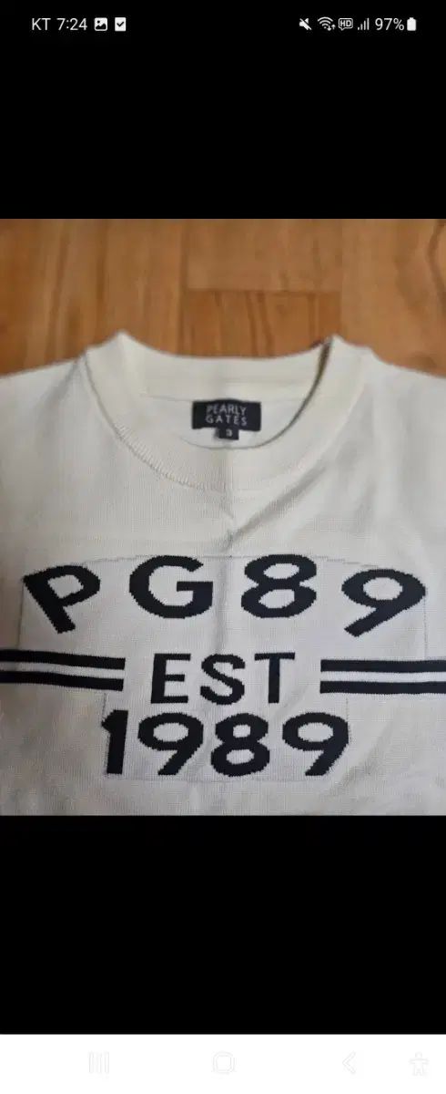これはアイボリーカラーのパリゲイツ女性用ゴルフニットです。胸にPG89のデザインが追加されました。腕の黒いラインがさらにおしゃれに。ご不明な点がなければ、すぐに安心してお支払いいただけます!