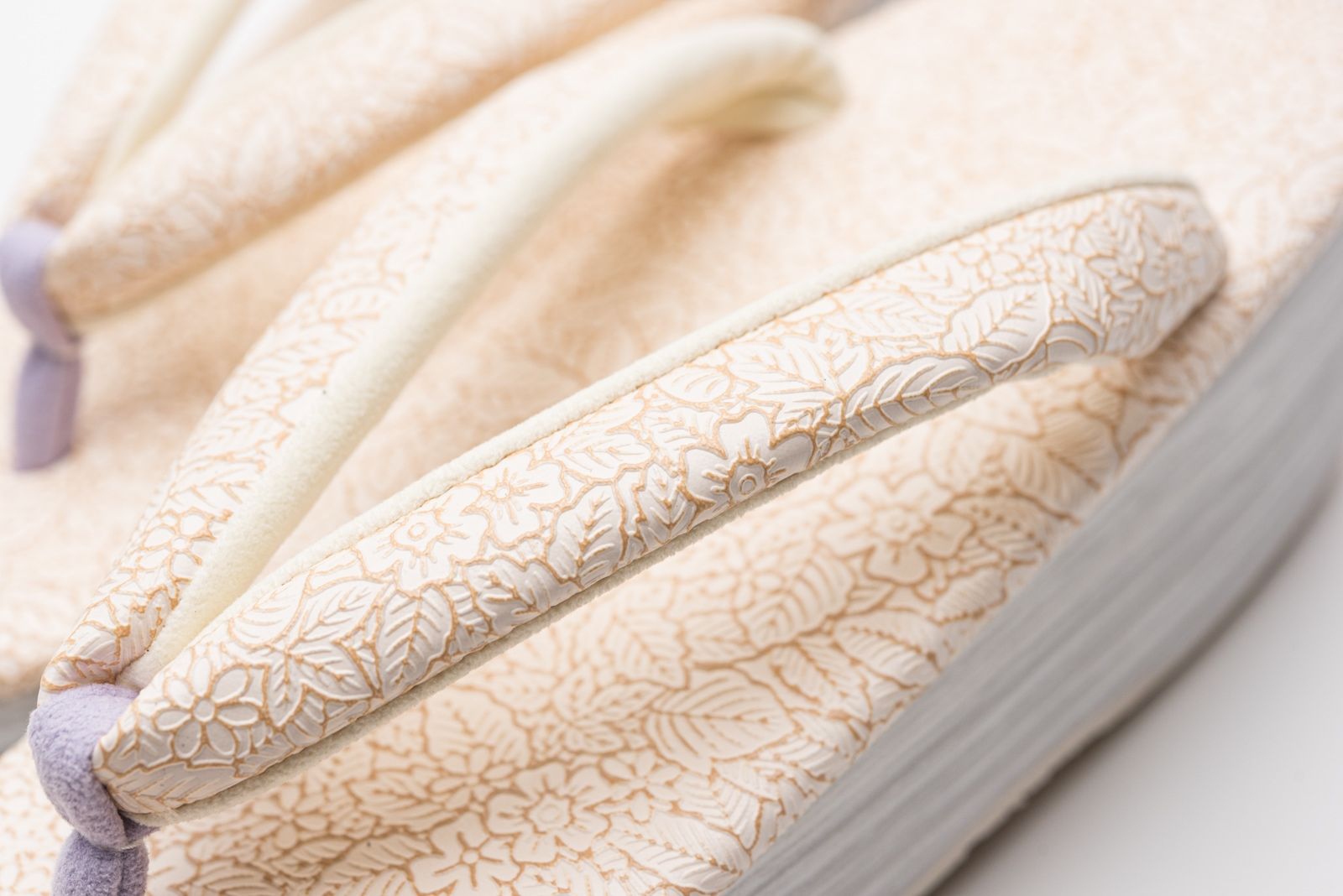 小さな花や葉っぱの柄を緻密に配したカフェ草履です。