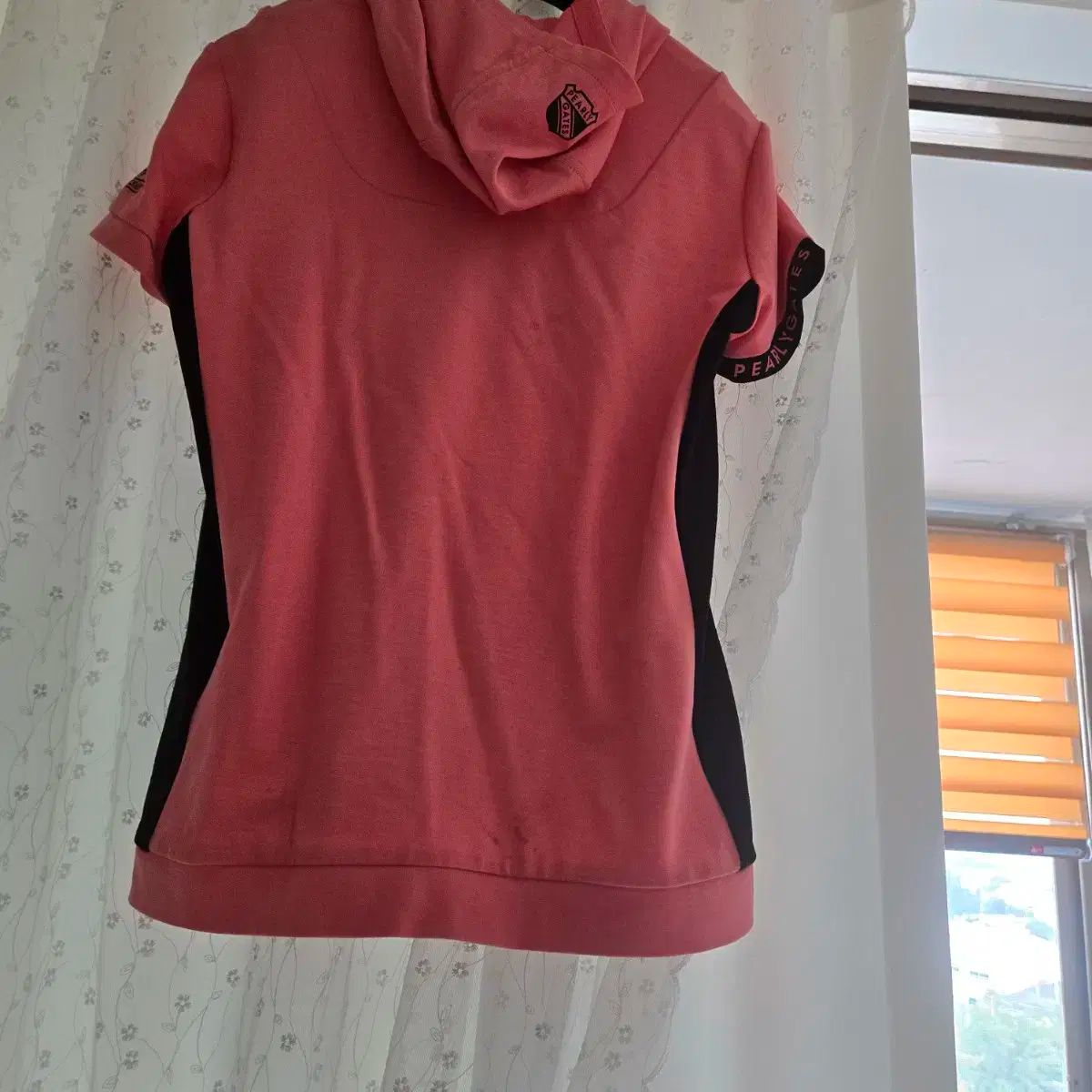 これはパリゲイツの女性用ゴルフトップです。ピンク色には黒い線が入っていて、スリムに見える効果があります。半袖なので夏でも涼しく着れます。ご不明な点がなければ、すぐに安心してお支払いいただけます!