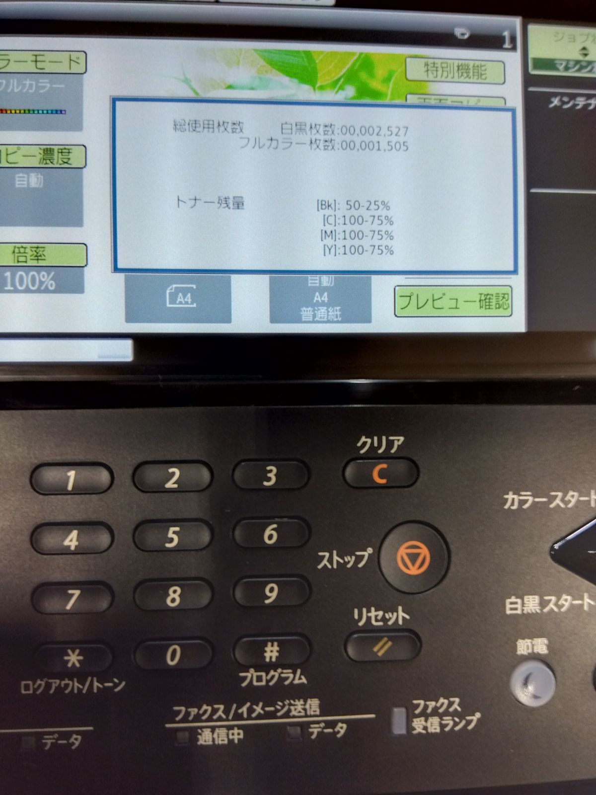 カウンター値 モノクロ:2,527 カラー:1,504 (出荷前の動作確認により差異が発生します。)