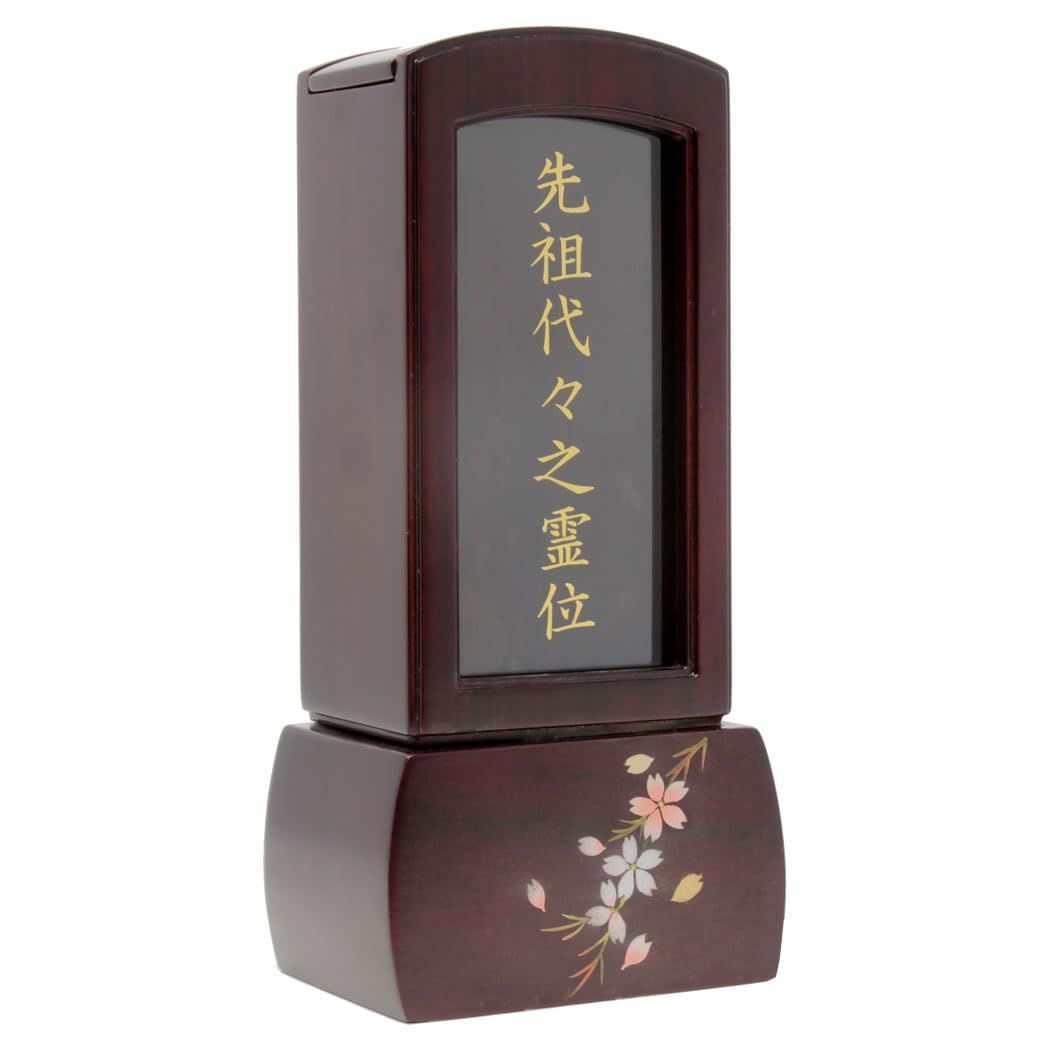 Size:蒔絵入り 3.5寸 (総高17cm) 松山神仏具店 位牌 繰り出し位牌 そよか 蒔絵入り 桜 3.5寸 回位牌 モダン おしゃれ 紫檀 ガラス 前板文字入り 先祖代々之霊位
