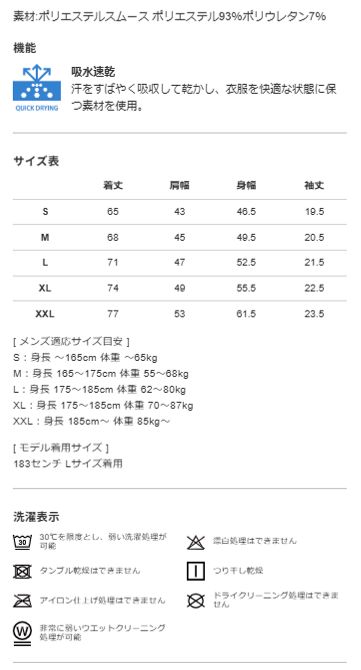 伸縮性と吸水速乾性を備えたポリエステルスムース素材を使用し、蒸れを軽減し快適な着心地です。"