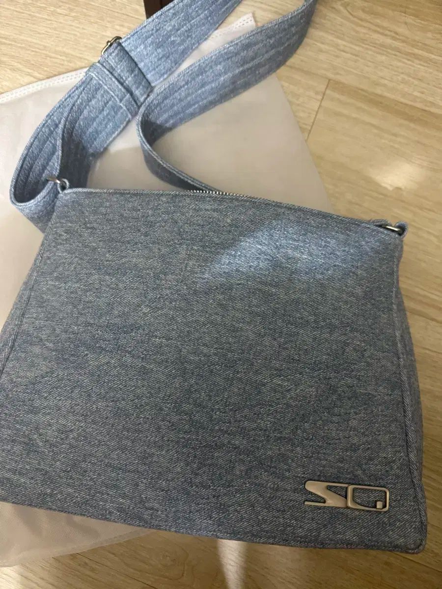 スクエアラインのネイサンバッグです。色はデニムです。デニムなので、どんな服装にも合わせてもOK