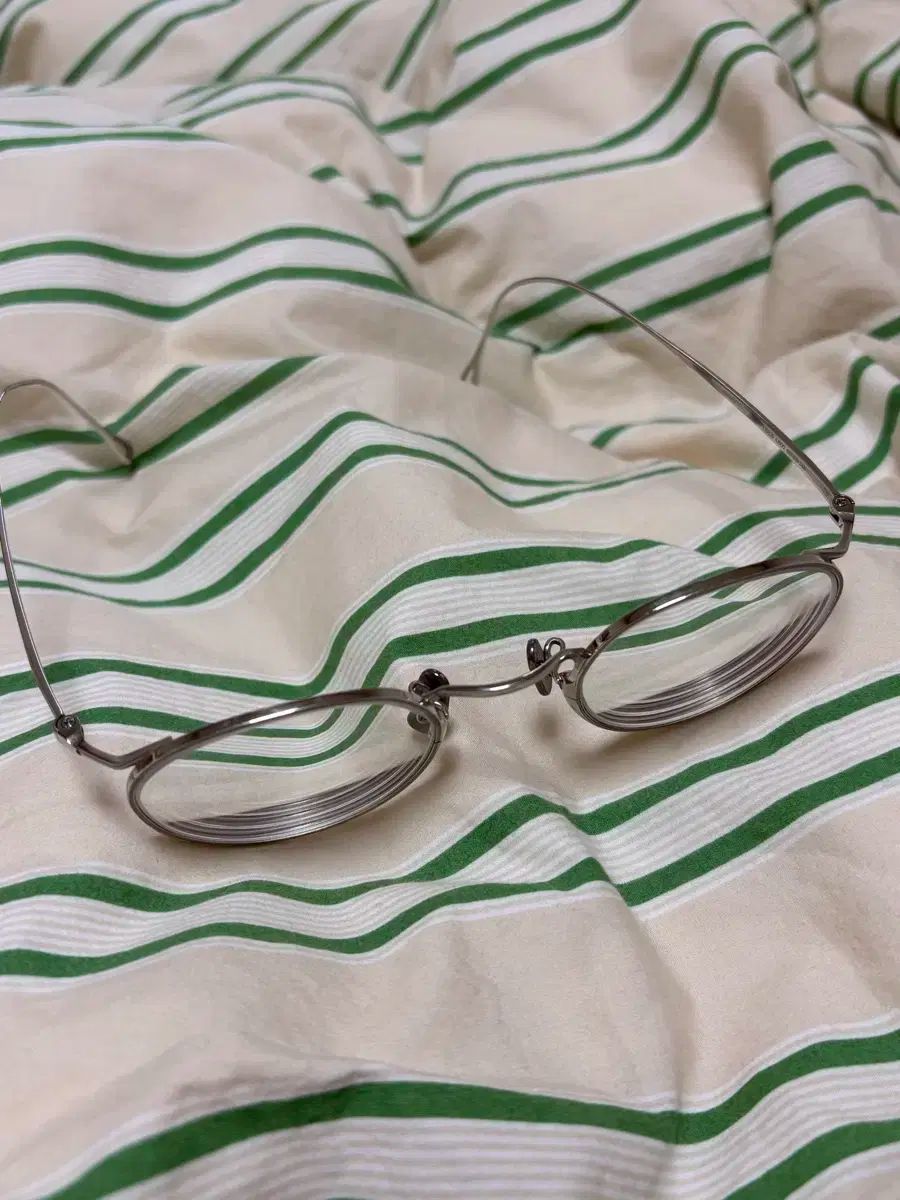 アイヴァン7285 156B(46) C800 光沢シルバー メガネです。ケースとメガネ拭きはありますが、レンズは度数ありのものを使用したため交換が必要です。