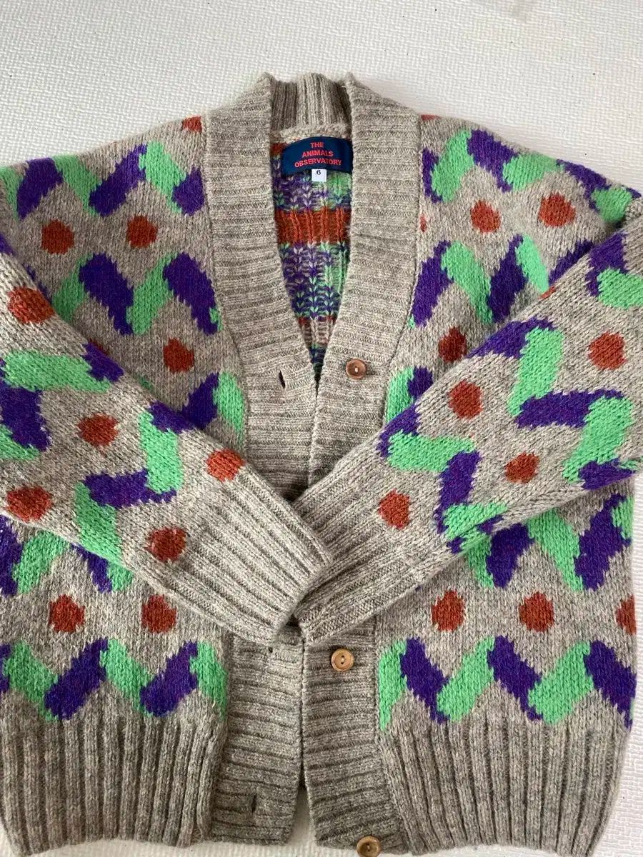 タオカーディガンのサイズは6です。この商品はそのユニークなパターンが際立っています。使用感もほとんどなく、綺麗な状態ままです。1、2回着用してください
