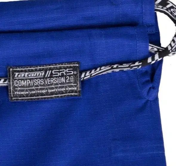 TACKではタグ付きの新品畳柔術スーツを販売しています。これはコンプSRS 2.0モデルで、色は青です。軽量で丈夫な素材で作られているので、着心地が良いです。パンツはツイストトップなので、とても快適です。