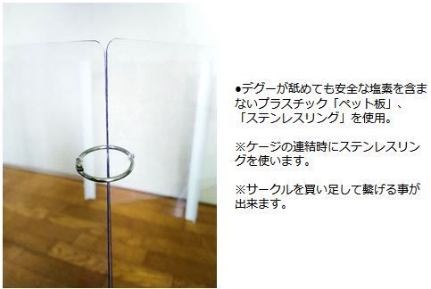 ●デグーが舐めても安全な塩素を含まないプラスチック「ペット板」、「ステンレスリング」を使用。