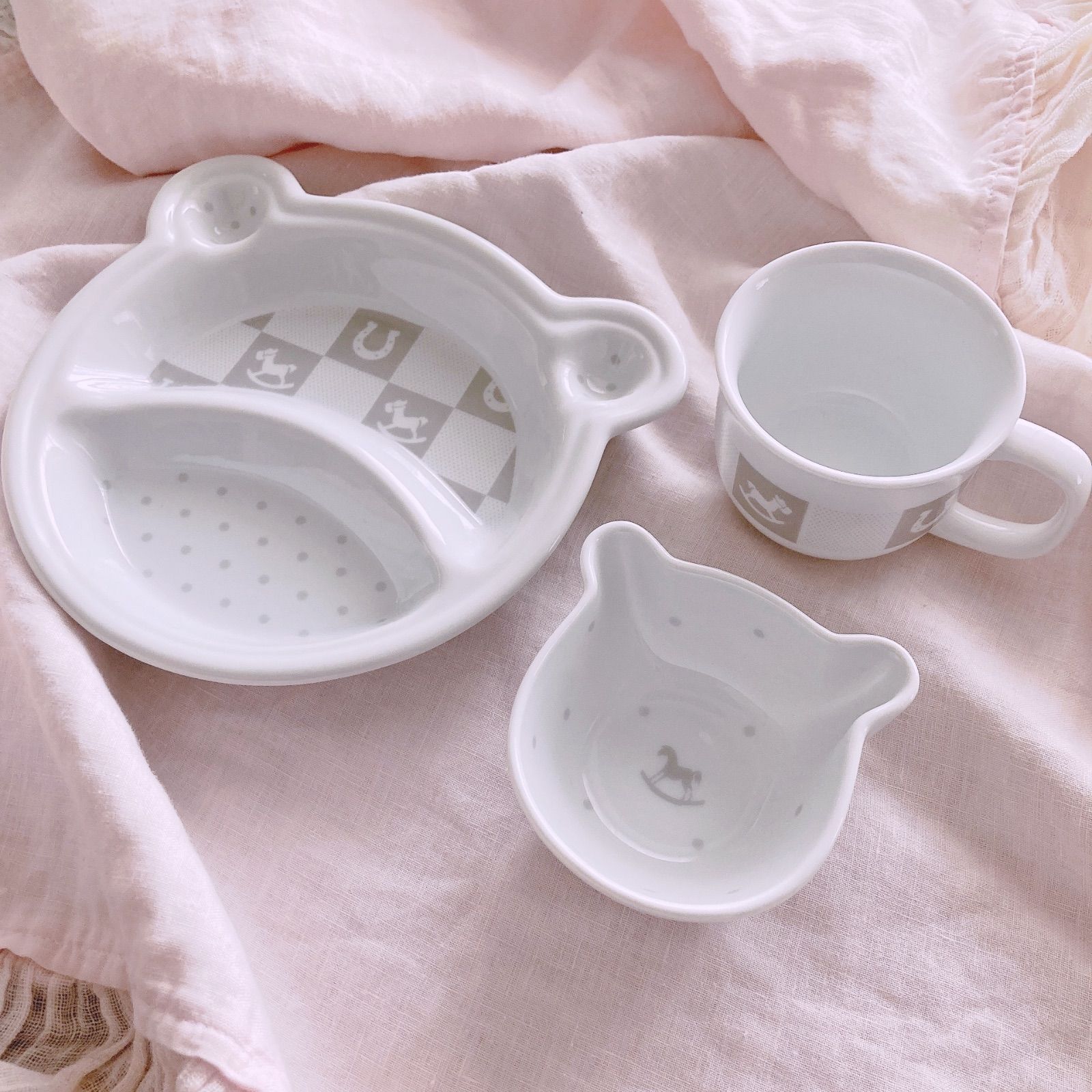 可愛いベビー食器3点セット(ランチプレート・ミニボウル・マグカップ)です。
