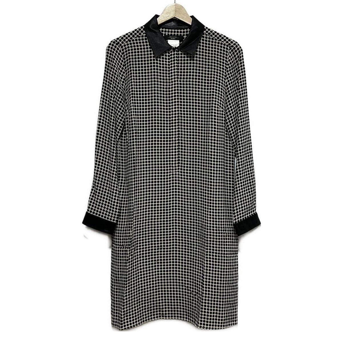マックスマーラウィークエンド ワンピース サイズ38 J レディース - ベージュ×黒 レギュラーカラー|長袖|ひざ丈|シルク|ドット柄