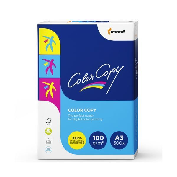 ●オフィスを彩るビビッドなパッケージの「mondi」、サイズはA3、坪量100g/m2、500枚×4冊入です。