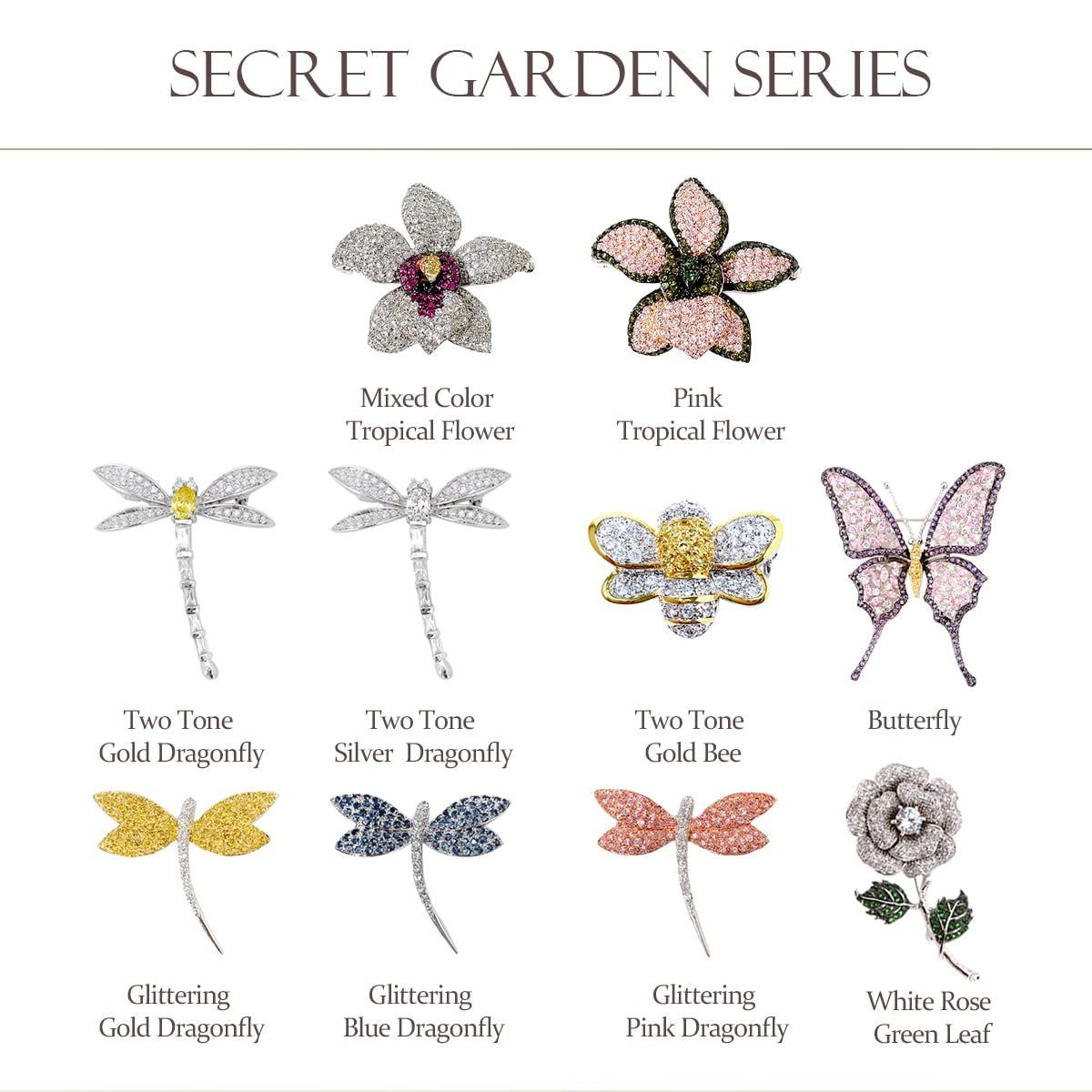 秘密ガーデンブローチ ビー、ミツバチ、トンボ、花、バラ レディースブローチ