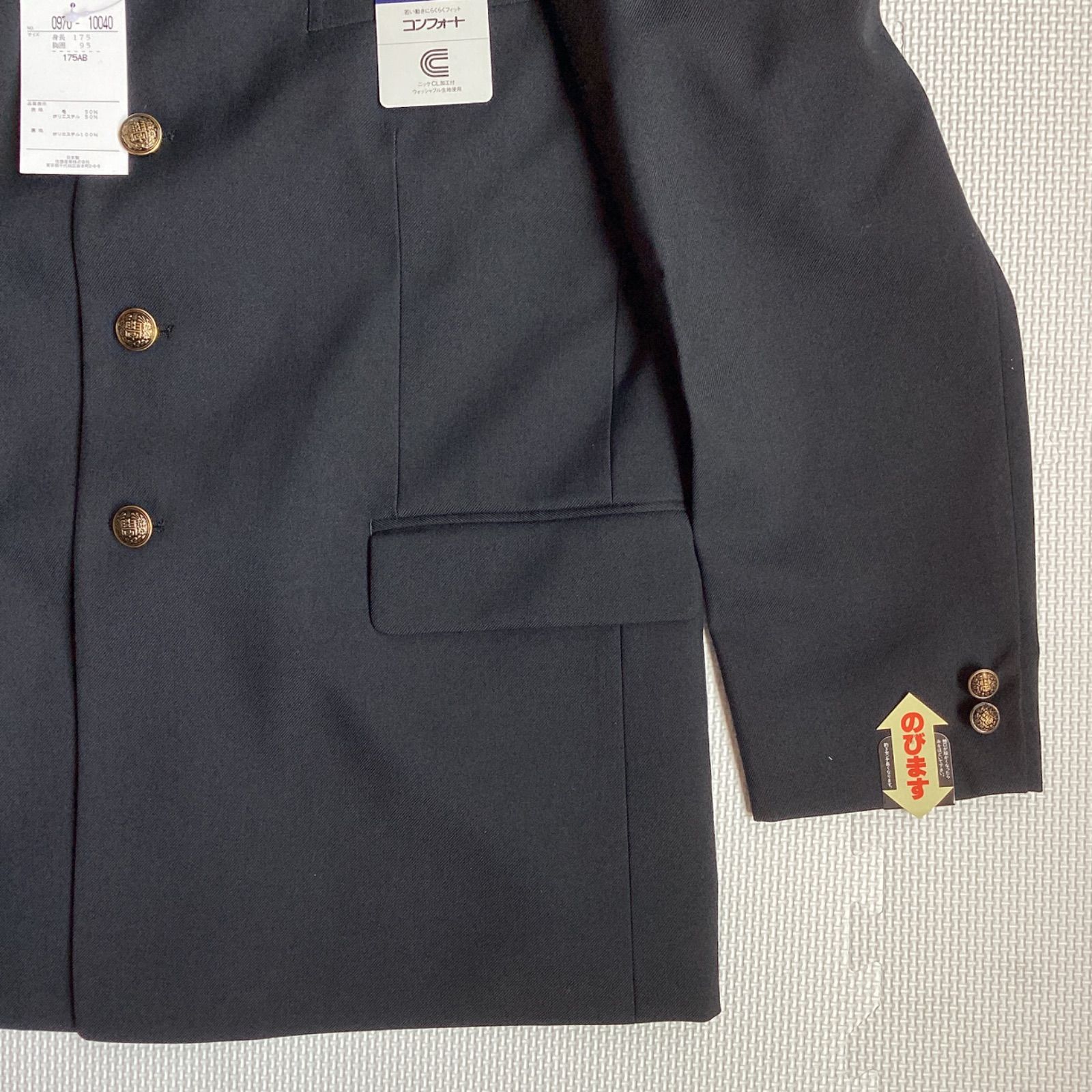 男子 学生服 175AB 襟 10040 学生 学ラン 詰襟 標準型 ポリエステル50% 毛50% ニッケ学生服 コンフォート Green Mate ウォッシャブル