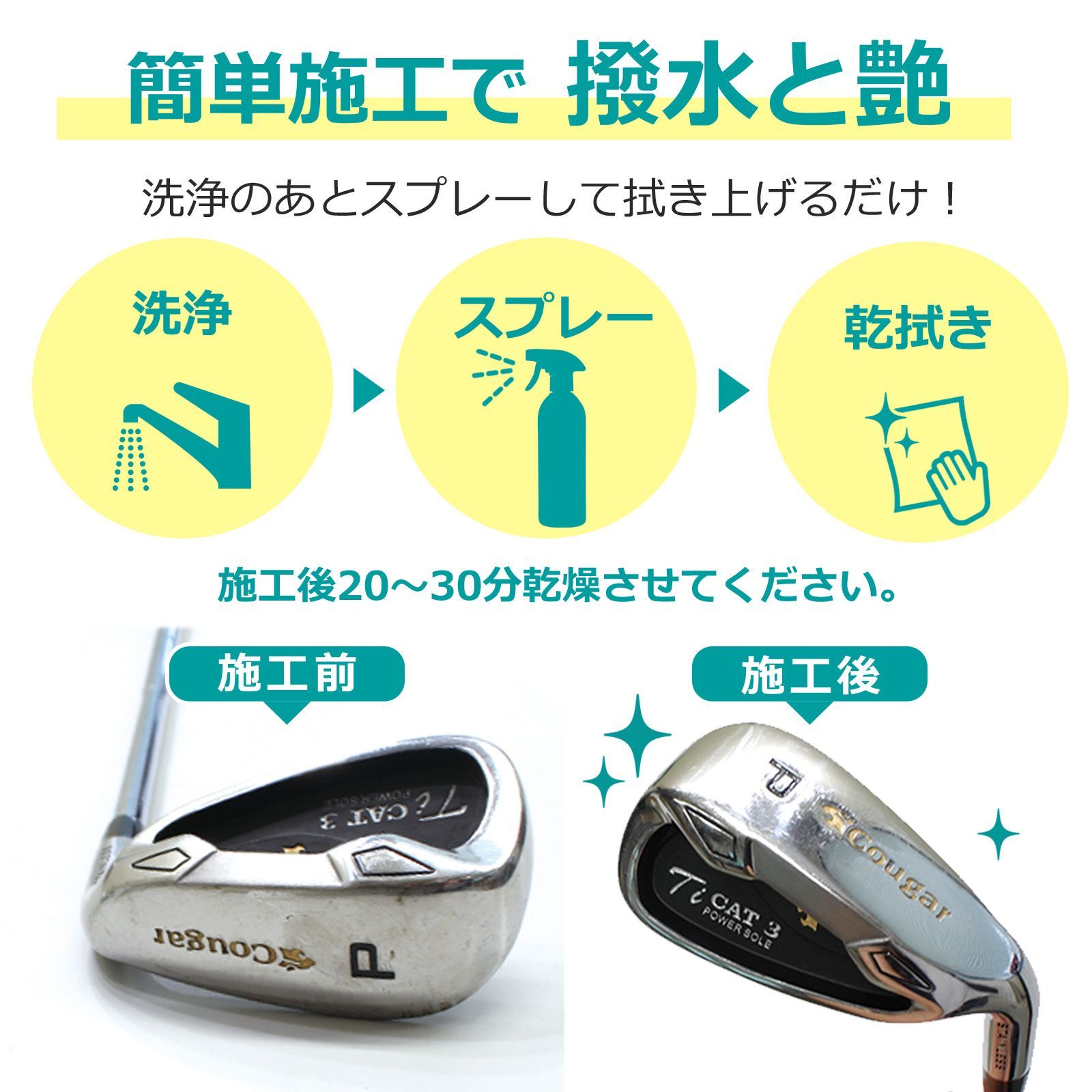 簡単施工でつやピカ仕上げ ゴルフクラブ用コーティングスプレー 500 ml 10本セット 撥水 防汚 光沢長持ち