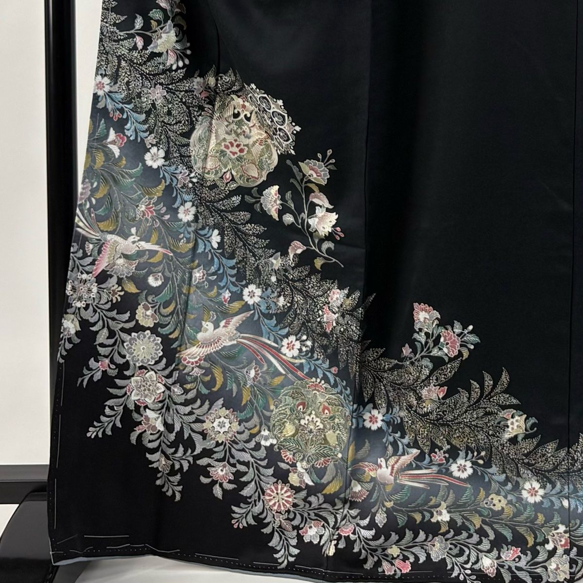 訪問着 身丈169 cm 裄丈70 L 袷 向かい鳥 草花 金銀彩 黒 正絹 秀品