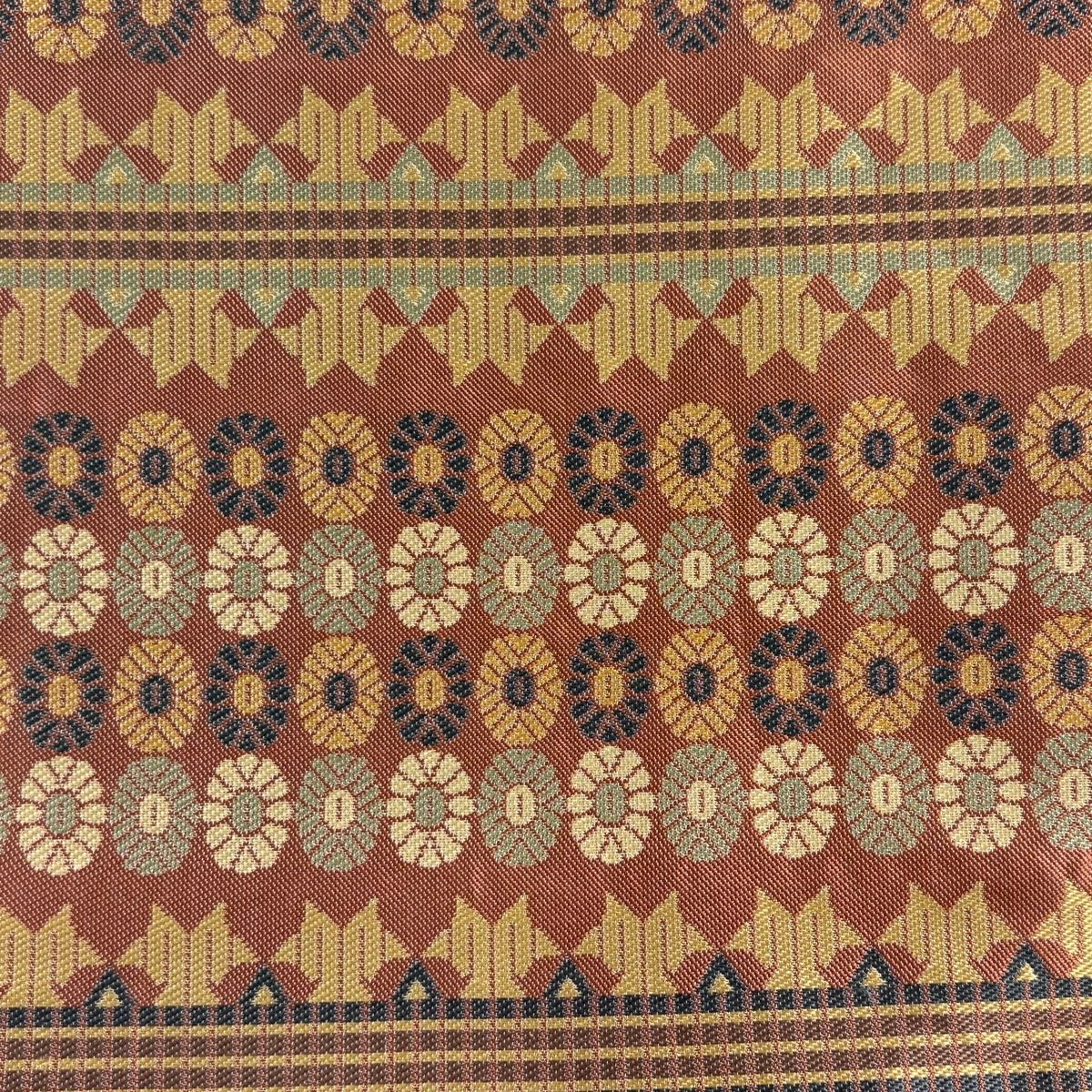 開き名古屋帯 幾何学 赤茶 正絹