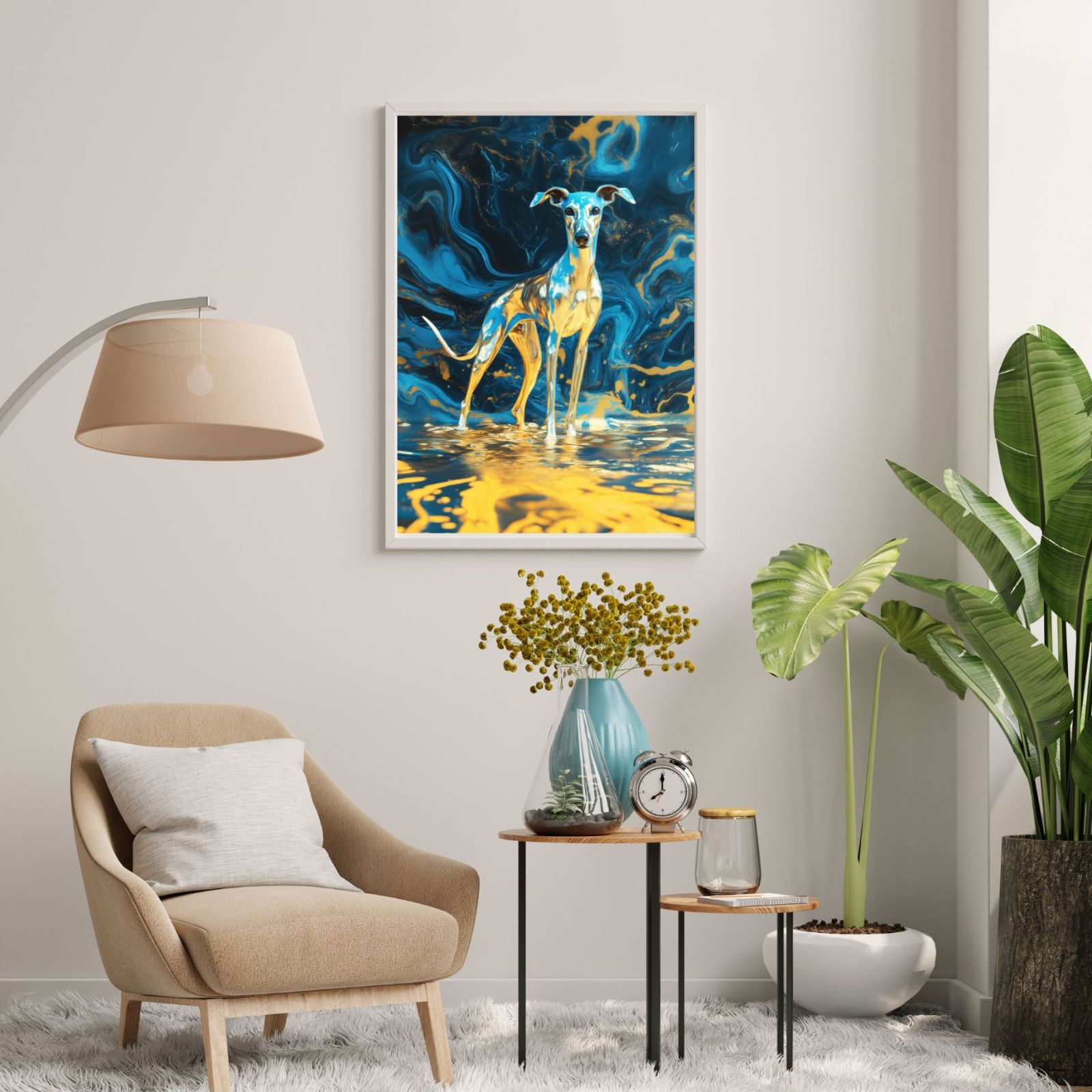 美しくかわいいワンちゃん達のアートポスターを玄関やリビング、ダイニングや寝室に一枚飾るだけで、幸せな空間が一気に広がります。