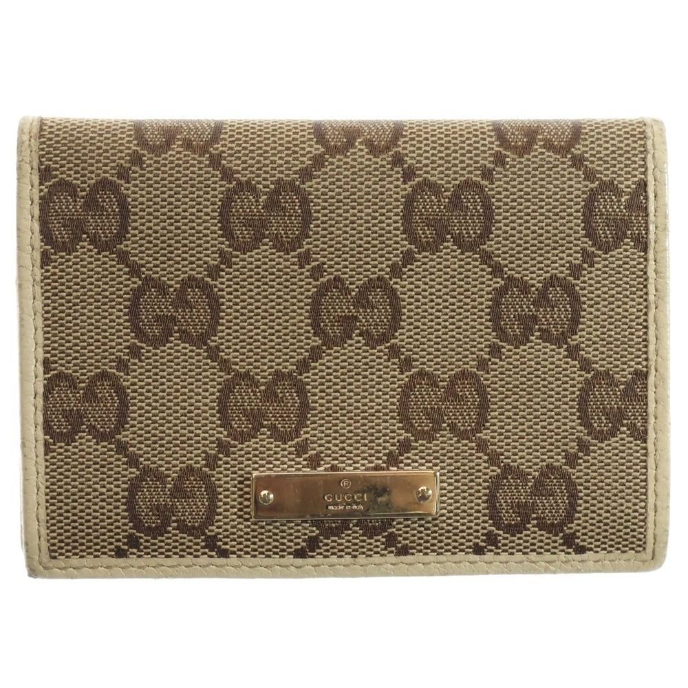 GUCCI グッチ GGキャンバス パスケース カードケース 名刺入れ ベージュ×ホワイト ゴールド金具 レザー×キャンバス 112727
