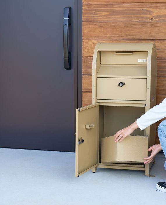 宅配BOX付ポスト U.S. キャメル おしゃれ ビンテージ クラシック 洋風 簡単設置 丈夫 耐久性 店舗 玄関 エクステリア デザイン 便利 アメリカ USA ちょうどいいサイズ 置き配 宅急便 イケア デザイナー