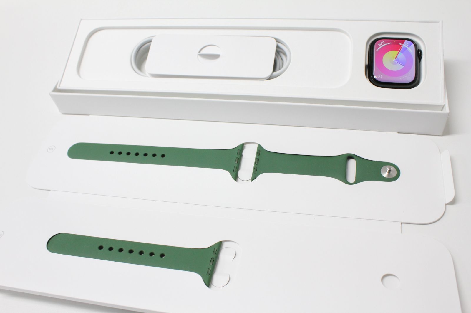 本体、スポーツバンド、充電ケーブル、元箱(画像1枚目に写っているものすべて)