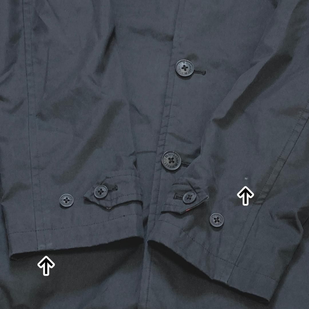 袖に生地のテカリ、首回りと折り返し部分に薄汚れ、内側裾と1番上ボタン内側に薄しみあり。