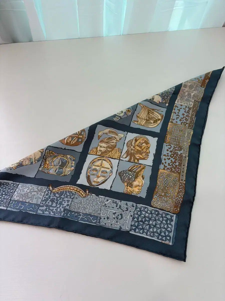 このスカーフを箱に入れて保管しました。全体的に落ち着いた色なので、どんな服装にも合います