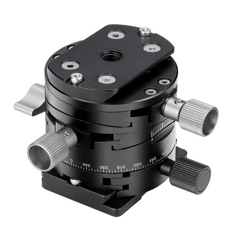2箇所のダイヤルによる精密調整が可能なギア雲台。