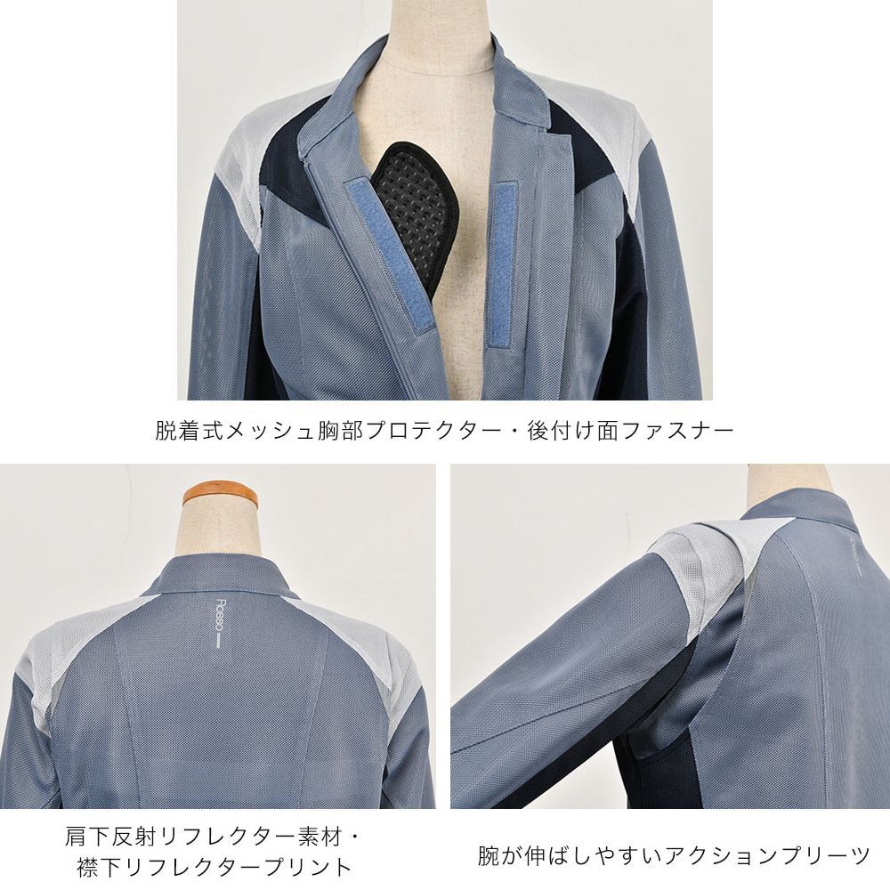 春夏 モデル レディース バイク用 ライダースメッシュジャケット 肩 肘 脊椎 胸部 プロテクター付属 Rosso StyleLab ロッソスタイルラボ ROJ-105 バイク 女性用 インナー プロテクター付き