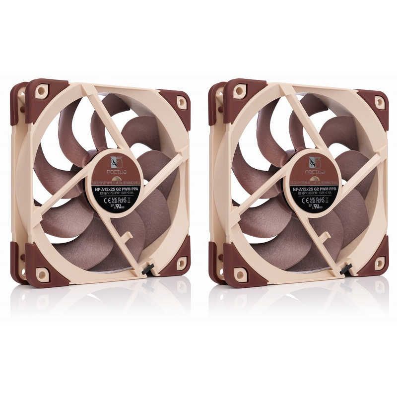 NF-A12x25 G2 PWM Sx2-PPは、速度がオフセットされた2台のNF-A12x25 G2 PWM 120mmファンのセットです。