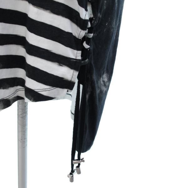 ■採寸#XS総丈84cm肩幅52cmB96cm袖丈16cm■素材コットン100%バルマンからフーディーワンピースのご紹介です。フード付きのお品物で全体にダメージ加工が施されています。前身頃や後ろ身頃、フード等全体的にダメージ加工が施されたモノトーンのお品物になります。ボーダー柄と両サイド裾の編み上げデザインや袖のデザインが◎お問い合わせ下さい。