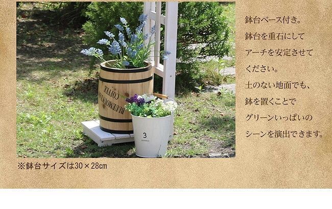 鉢台ベース付き。鉢台を重石にしてアーチを安定させてください。