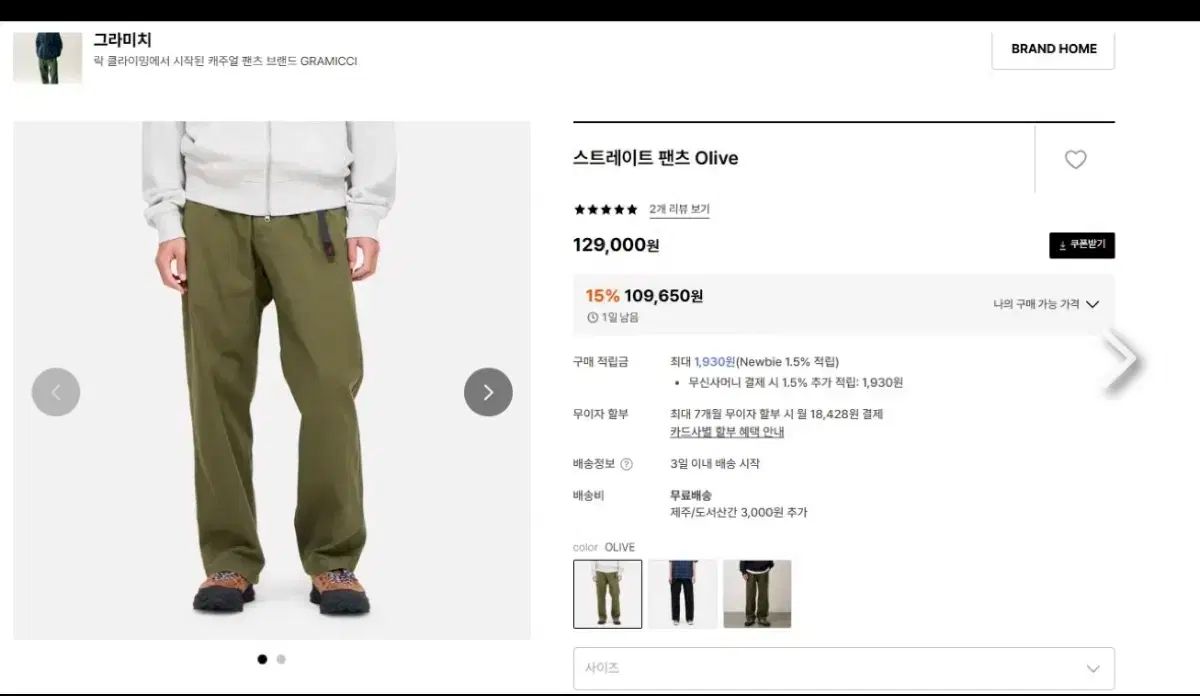 グラミチのパンツ Olive COLORです。