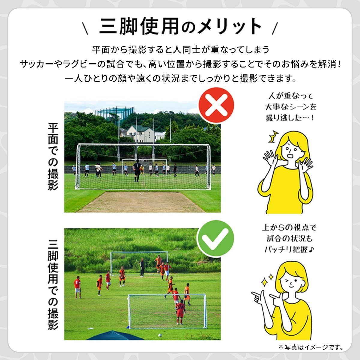 【こんなシーンで活用】お祭りの人込みも、大人数での集合写真も、広大なお花畑もダイナミックな写真で実際に目にした感動をそのまま撮影できます。また、サッカーやラグビーの試合でも高い位置から撮影することでそのお悩みを解消!一人ひとりの顔や遠くの状況までしっかりと撮影できます。