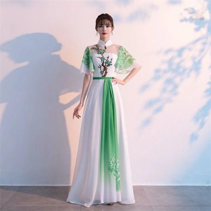 古典舞踊 ダンス衣装 レディース ロング丈ワンピース 中華風ワンピース 古典ダンス 舞台衣装 ダンスウェア 民族風 チャイナダンス 表演服