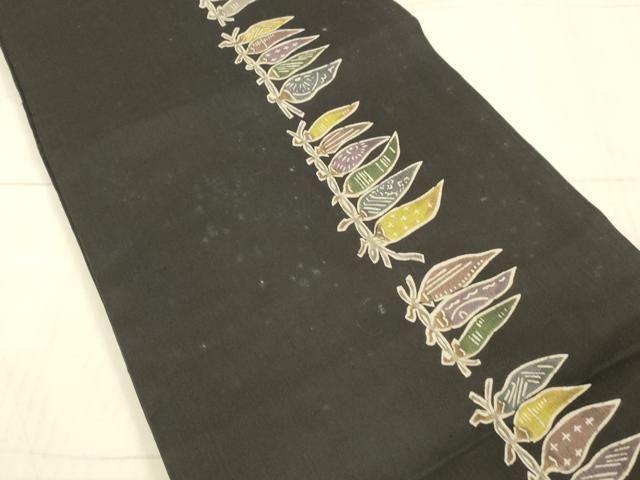 平和屋着物 夏物 九寸開き名古屋帯 型染 成り物 黒地 正絹 cm