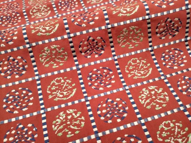 平和屋着物 本場筑前博多織 八寸名古屋帯 格子丸文 正絹 hy