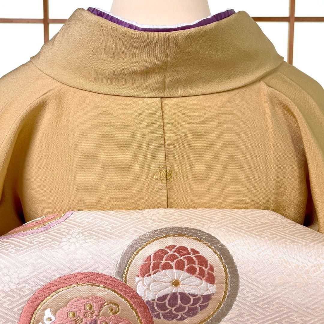 はしばみ色のちりめん地が目を引く、美しい一つ紋色無地着物です。(着物のみの出品です)